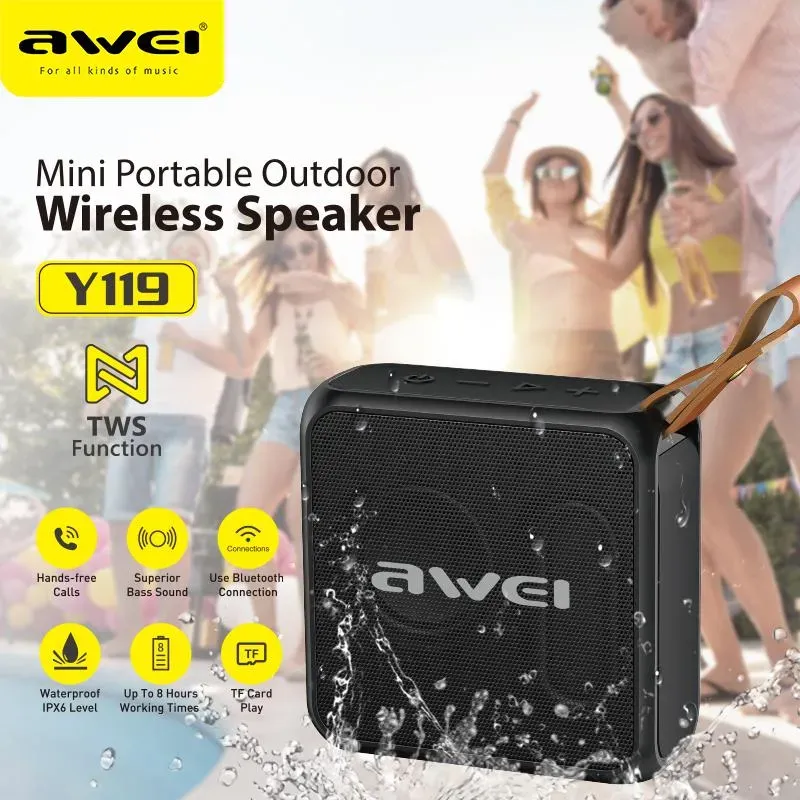 Introducing the Awei Y119 Portable Bluetooth Speaker – where compact design meets powerful sound. Immerse yourself in a world of crystal-clear audio, seamless connectivity, and convenience that fits in the palm of your hand. Whether you’re at home, on the move, or outdoors, let the Awei Y119 redefine your audio enjoyment.