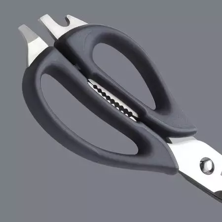 A: The scissors feature a multi-functional design, allowing them to handle a variety of cutting tasks in the kitchen.