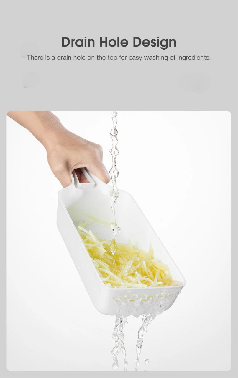 - Blade Memory Card Slot: The back side of the grater board is designed with a blade memory card slot for conveniently taking and placing new blades.