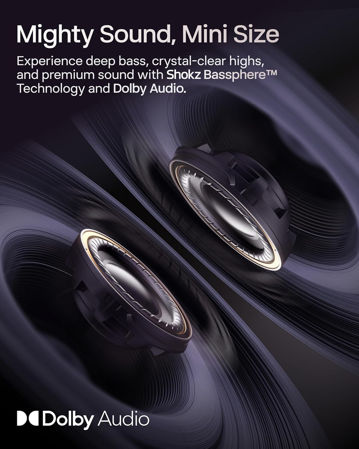 - Rich, Open-Ear Audio—Shokz’s signature open-ear design keeps you connected to the world while you experience the pocket-sized power of OpenDots ONE’s premium Dolby Audio and Bassphere Technology.