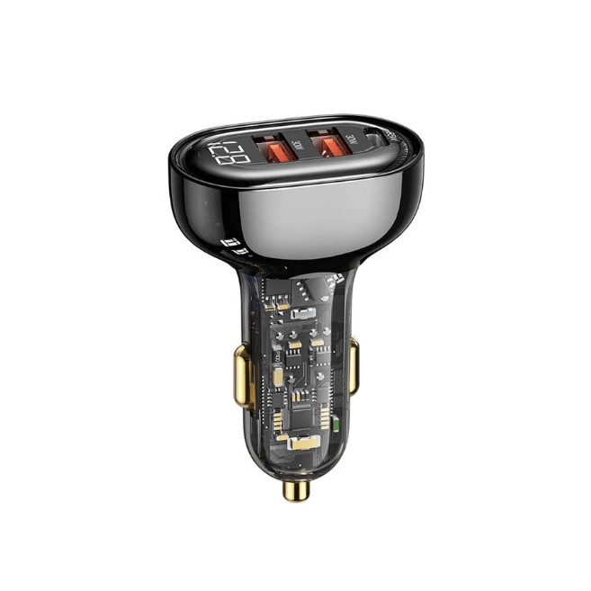 Tired of slow charging in your car? The USAMS US-CC158 125W Car Charger delivers lightning-fast charging for multiple devices, featuring USB-A & USB-C ports with PD & QC fast charging protocols. Its transparent futuristic design with a digital display adds a modern touch while keeping you informed about your charging status.